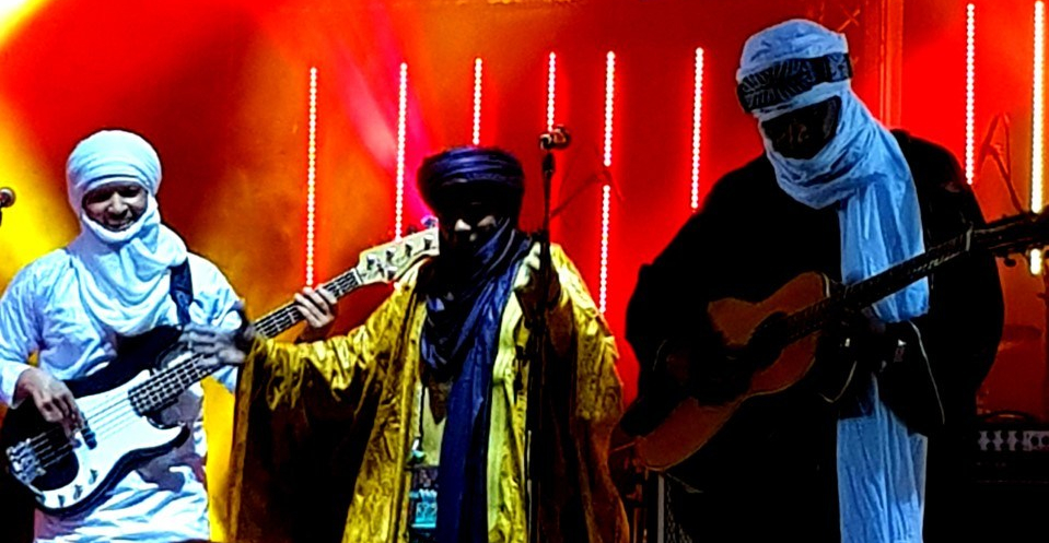The Grammy Award-winning and stadium-filling band left no-one guessing as to how their fame had seen them play shows all over the world, with their reverential songs sung in the traditional Berber language of Tamasheq a true thing of beauty. Singer and guitarist Abdallah Ag Alhousseyni was a highlight of the performance, a celebration of feeling and movement through dance, as he manoeuvred the stage in stunning full-length robes. Every so often, his dance would pick up, egging on the beat and energising the crowd.